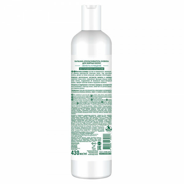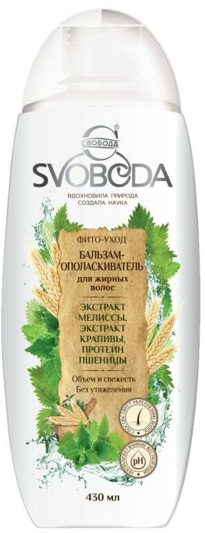 Купить Свобода Бальзам для волос жирных Экстракт мелиссы, крапивы, протеин пшеницы, 430мл