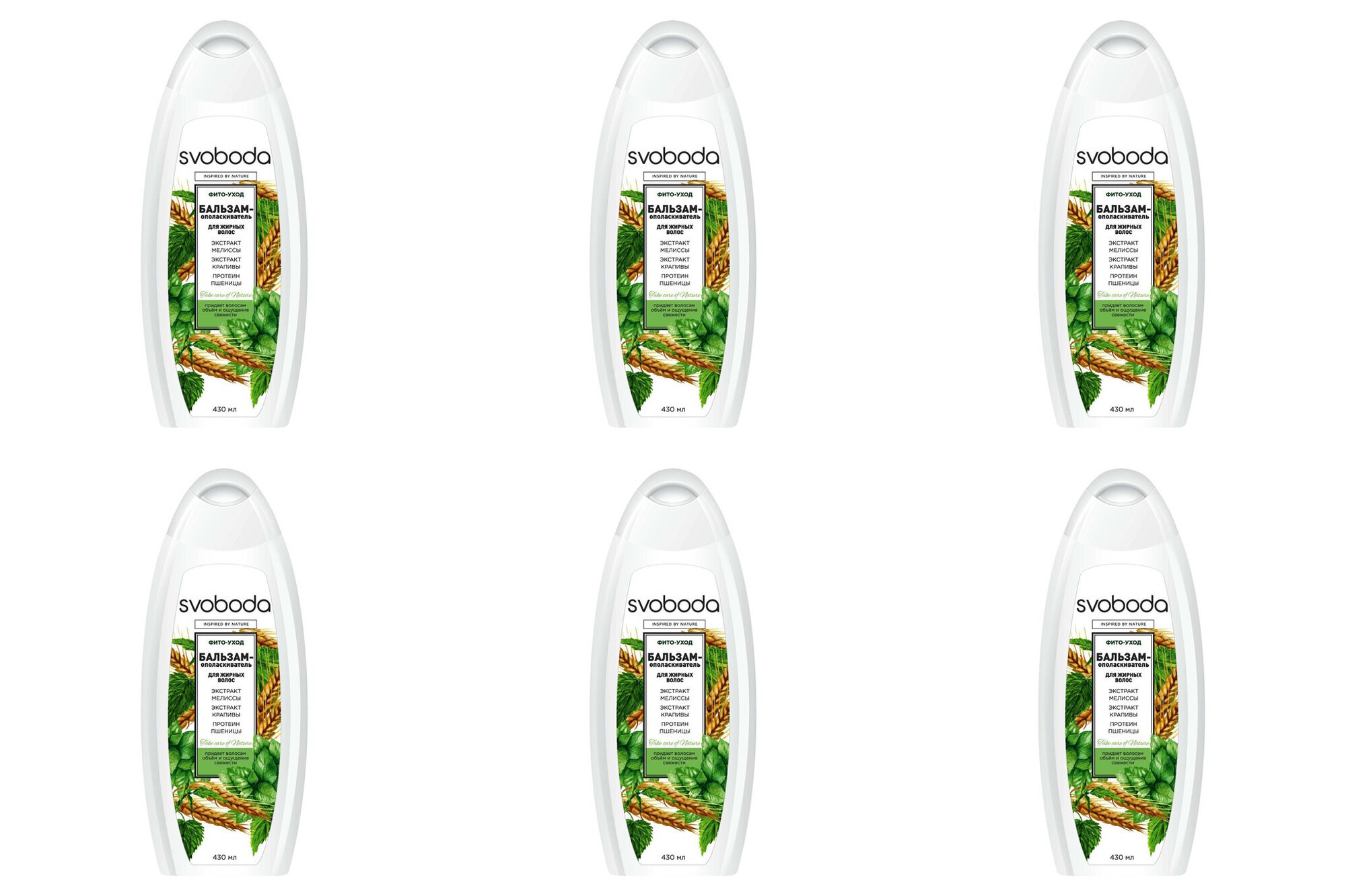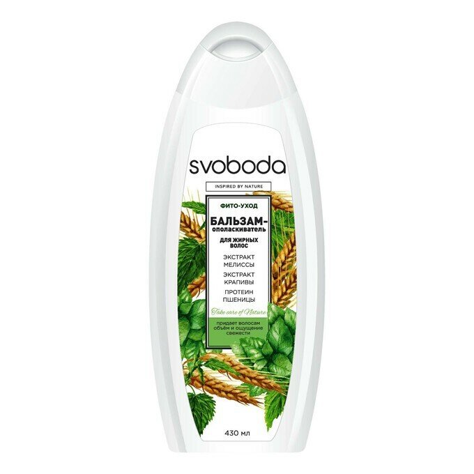 Бальзам-ополаскиватель Svoboda Мелисса, крапива и пшеница для жирных волос, 430 мл