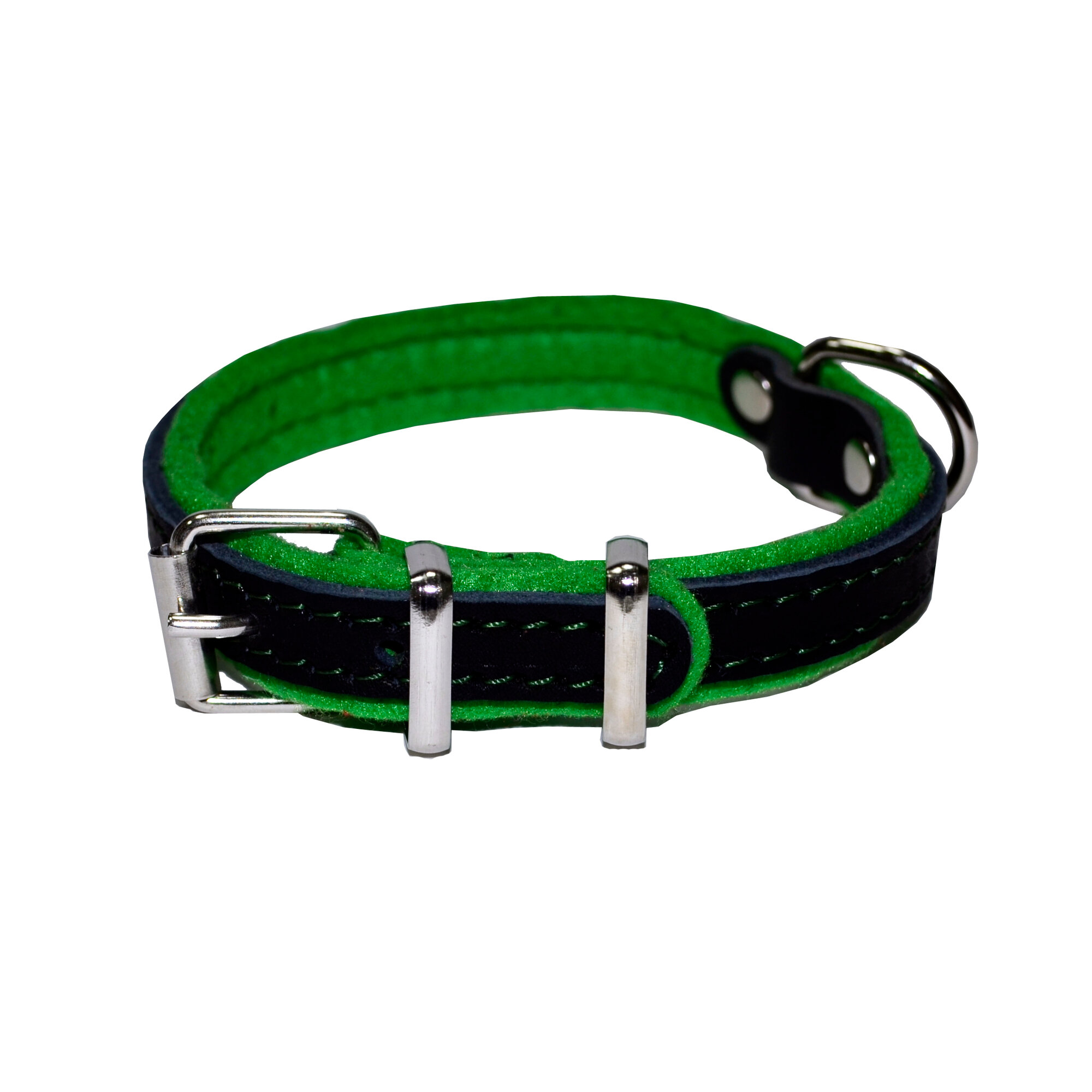 Ошейник кожаный с подкладом "Фетр", 1,6 см, ОШ 20-28 см, чёрный/зелёный