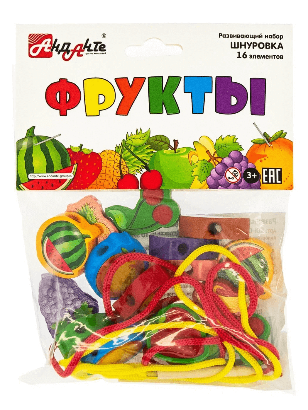 Анданте. RDI-D004a Развивающий набор шнуровка "Фрукты" 16 эл-в