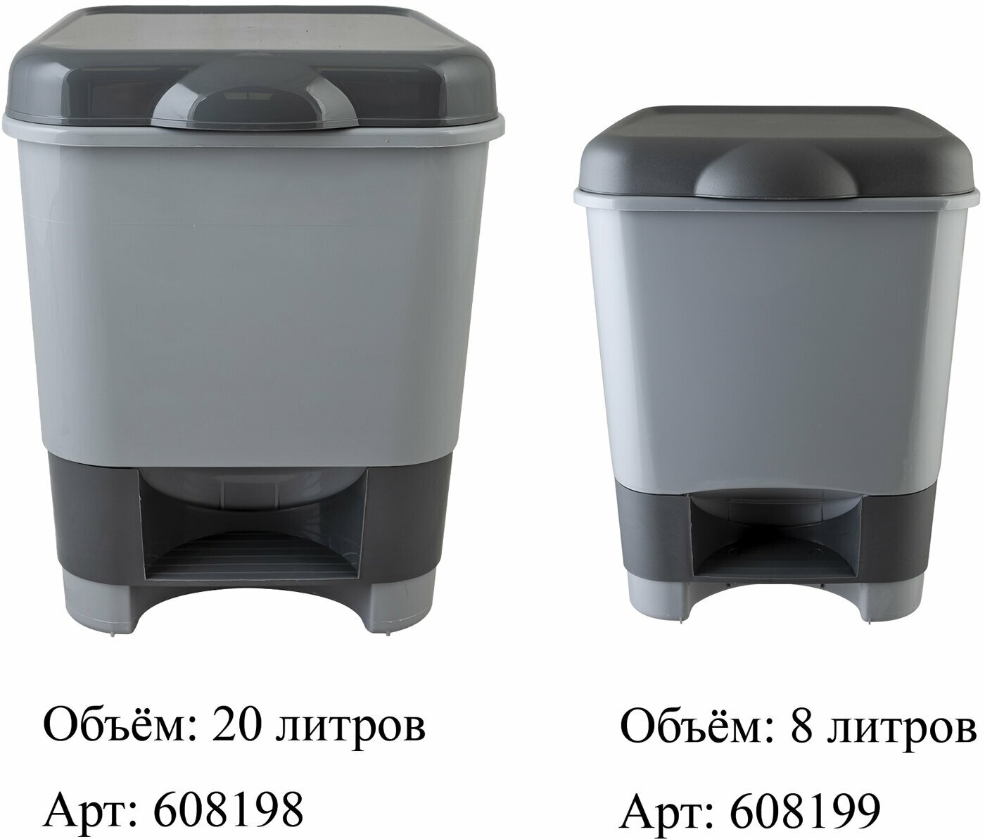 Ведро-контейнер 20 л с педалью, для мусора, 43х33х33 см, цвет серый/графит, 428-СЕРЫЙ, 434280165