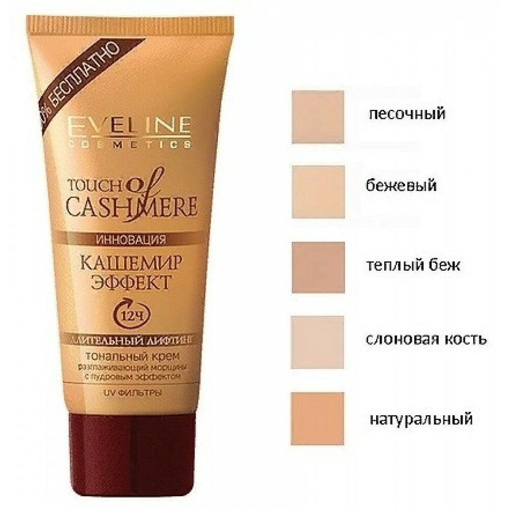 СохранитьEveline Cosmetics Тональный крем Touch of Cashmere, 40 мл, оттенок: теплый бежевый. интересное: