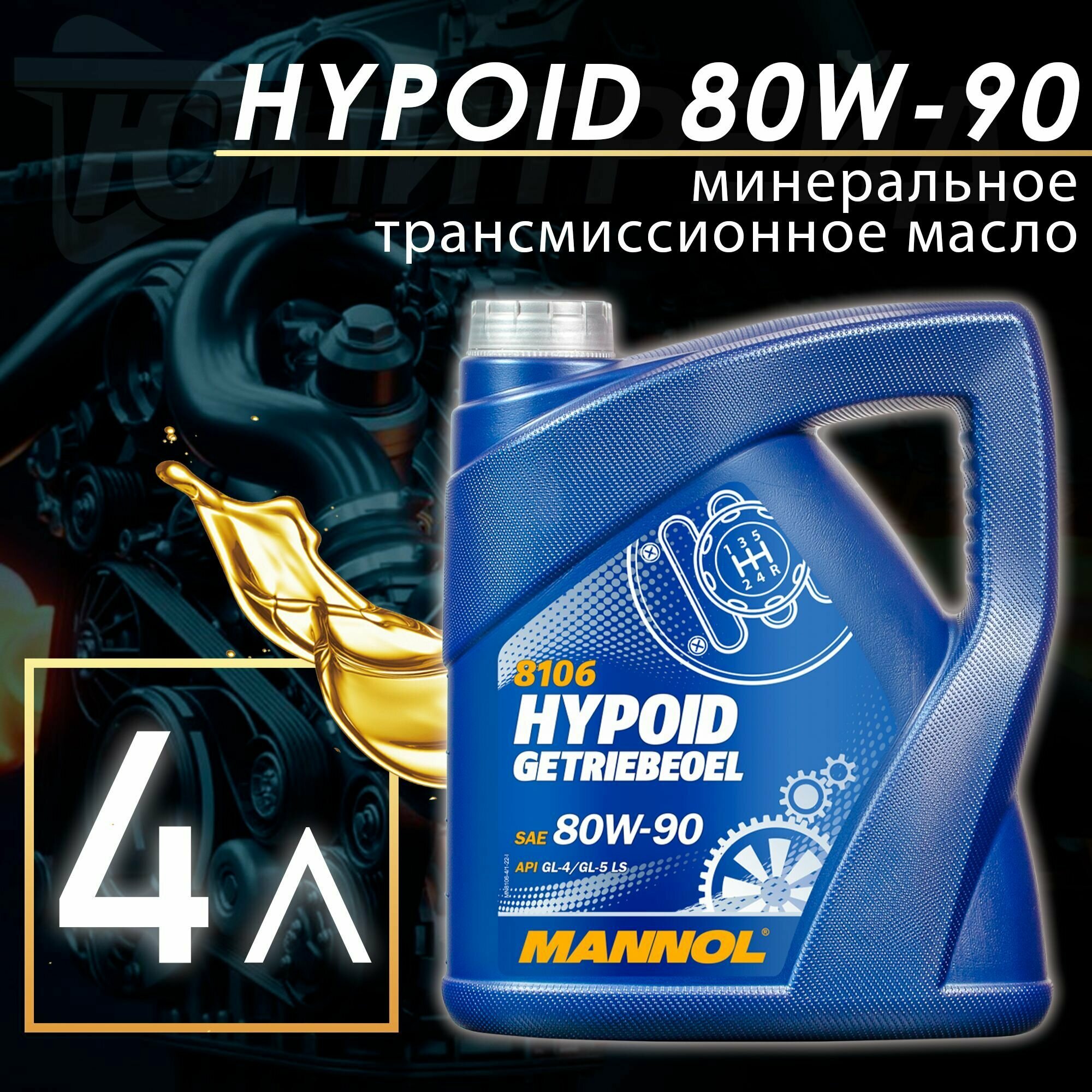 8106 Mannol Hypoid Getriebeoel 80W90 4 Л. Трансмиссионное Масло 80W-90 MANNOL арт. 1354