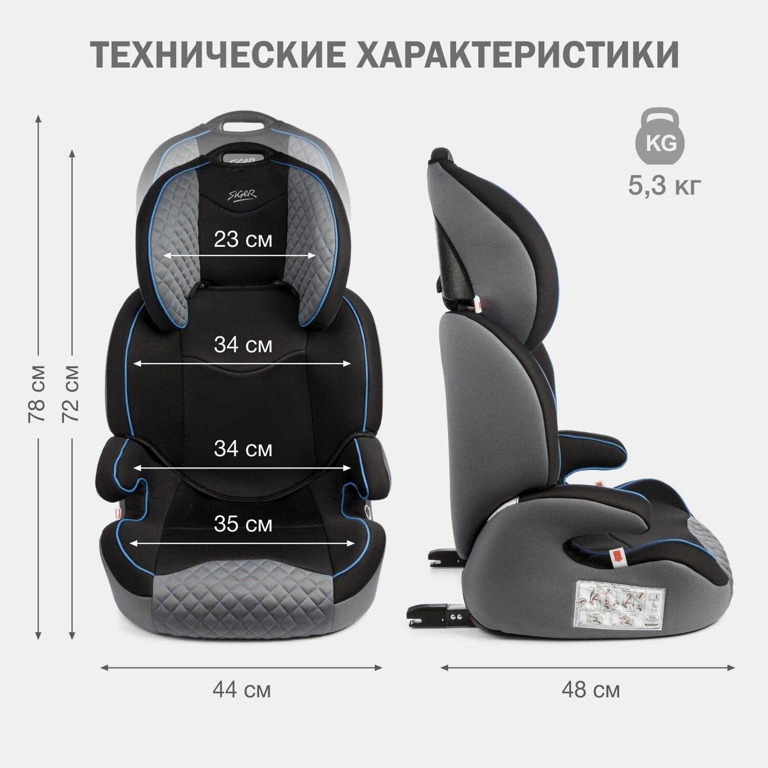 Купить Автокресло детское SIGER Вега Fix, blue, серый, 2/3 [kres2500]