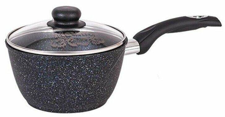 Ковш алюм, антиприг, 1.7 л, крыш стекло, бакелит ручка, Мечта, Гранит black, 82802