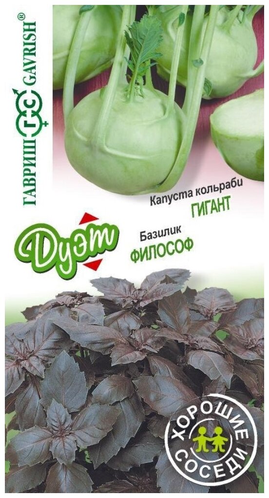 Базилик Философ 0.3г+Капуста кольраби Гигант 0.2г "Гавриш" Дуэт Хорошие соседи - 10 пачек семян