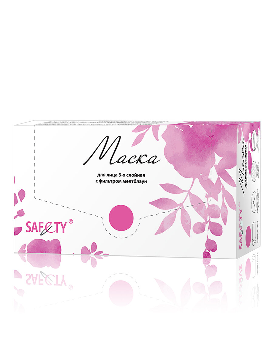 Маска для лица 3-х слойная одноразовая с фильтром мелтблаун, SAF&TY, 50 шт