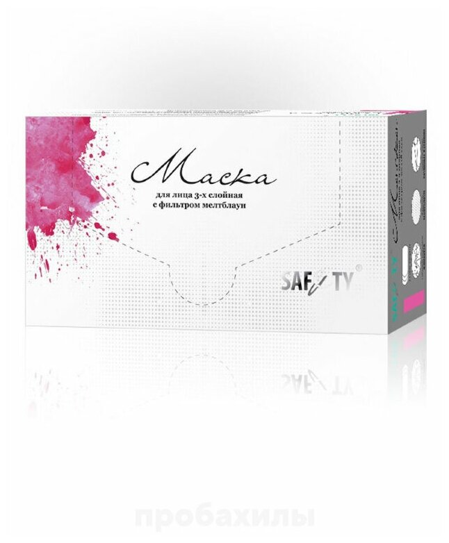 Маски Saf&ty, спанбонд/мелтблаун, 3-х слойные, фуксия, 50 шт в упак.