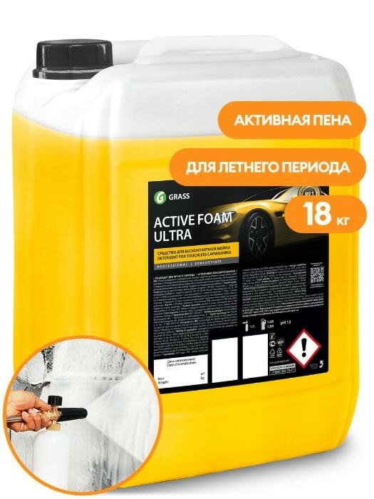 Купить Автошампунь GRASS для бесконтактной мойки, 20 кг, Active Foam Ultra, лето, антикоррозия