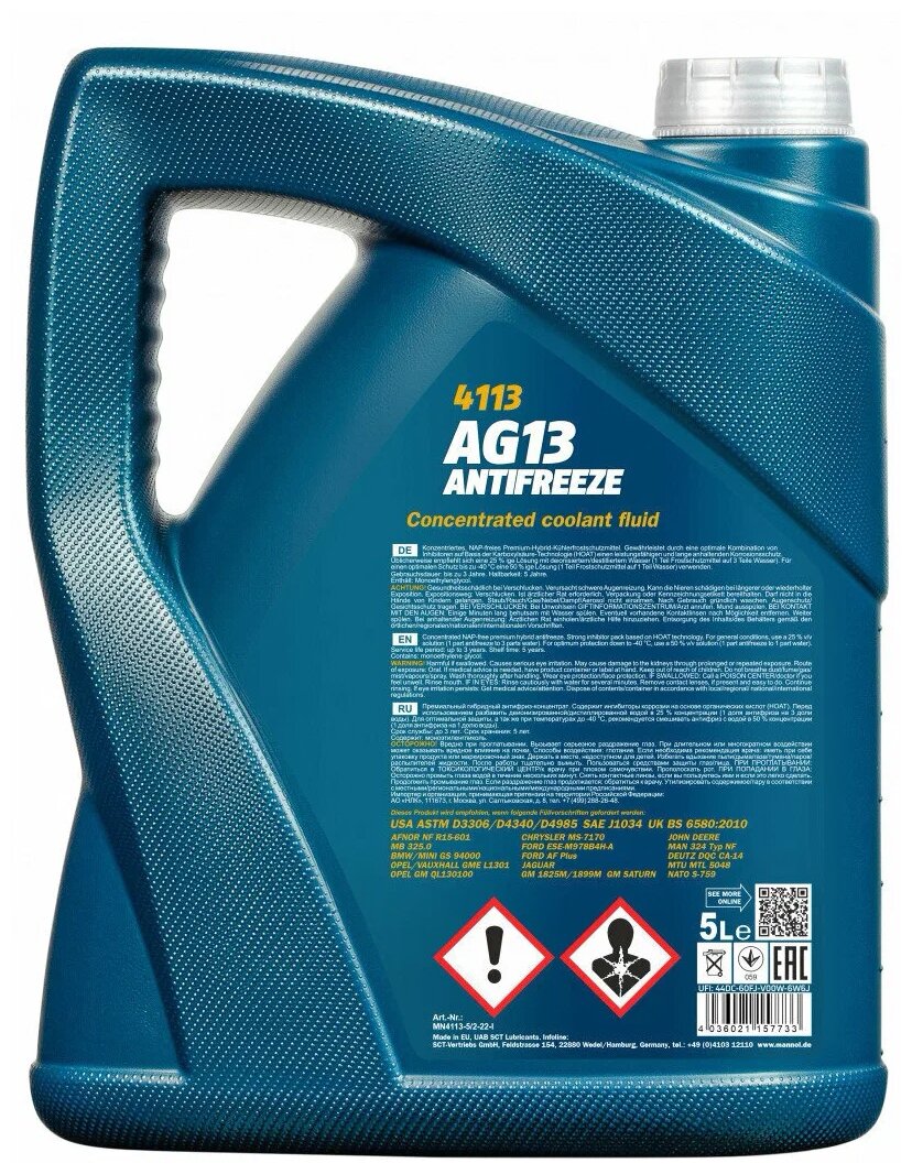 СохранитьAntifreeze AG13 -75 зеленый 5л., MANNOL MN41135 (1 шт.) интересное: