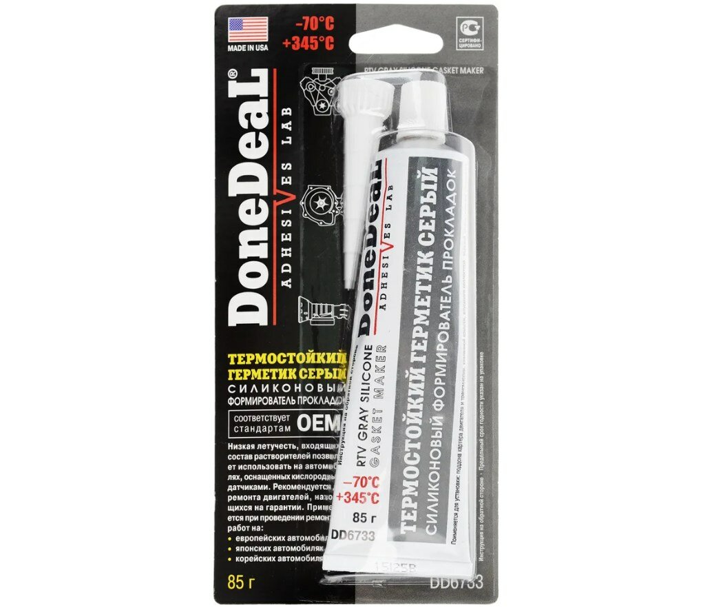 Термостойкий Серый Силиконовый Герметик Прокладка 85 Г DoneDeal арт. 6733DD