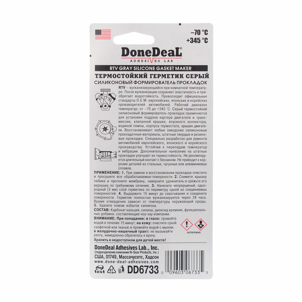 Герметик высокотемпературный серый 85г DD6733 Done Deal