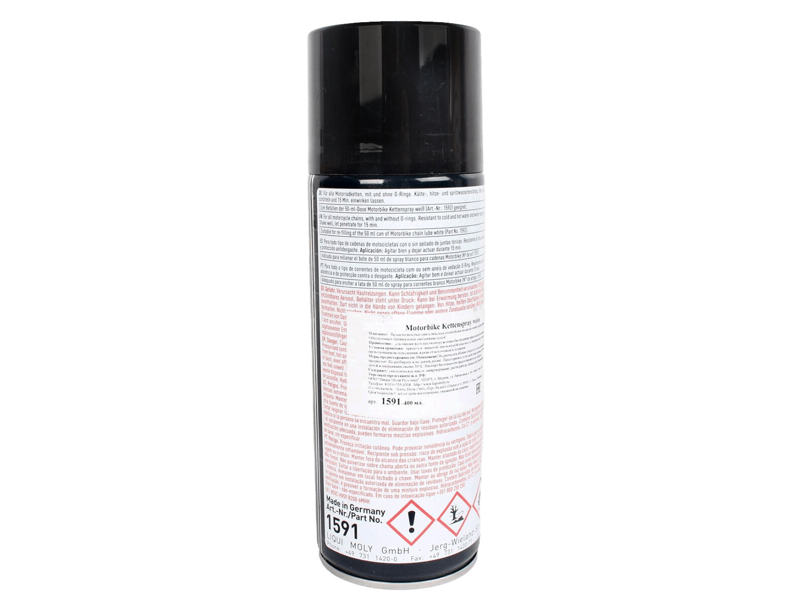 LIQUI MOLY 1591 1591 LiquiMoly Белая цепная смазка д/мотоц. Motorbike Kettenspray weiss (0,4л) 1шт