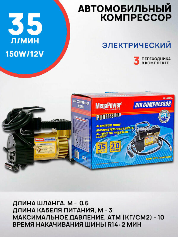 Компрессор автомобильный 35ЛМИН. 7АТМ. 14А 12V А MEGAPOWER Automotive арт. M14001A