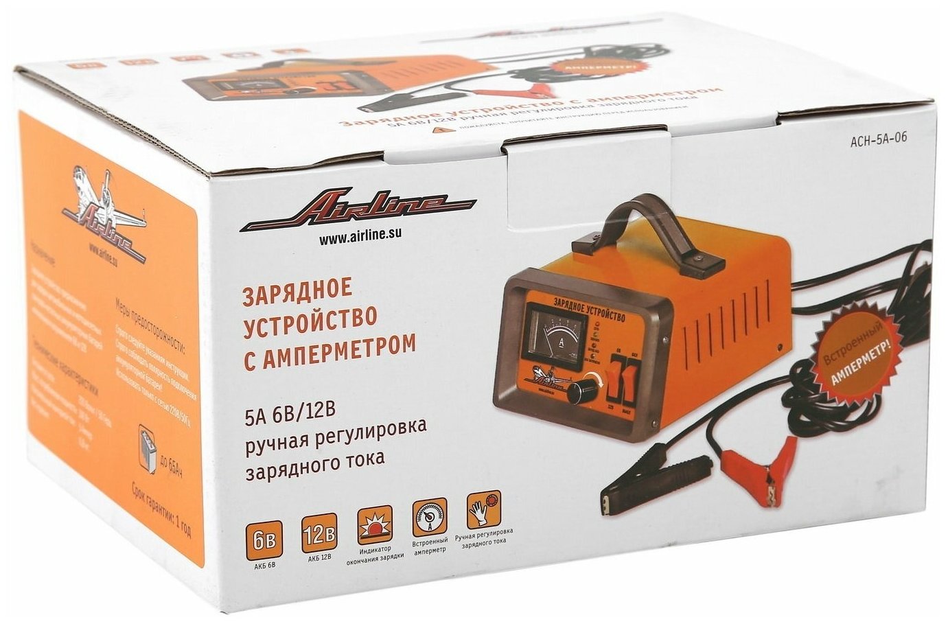 ACH-5A-06 AIRLINE Зарядное устройство 5А 6В/12В, амперметр, ручная регулировка зарядного тока