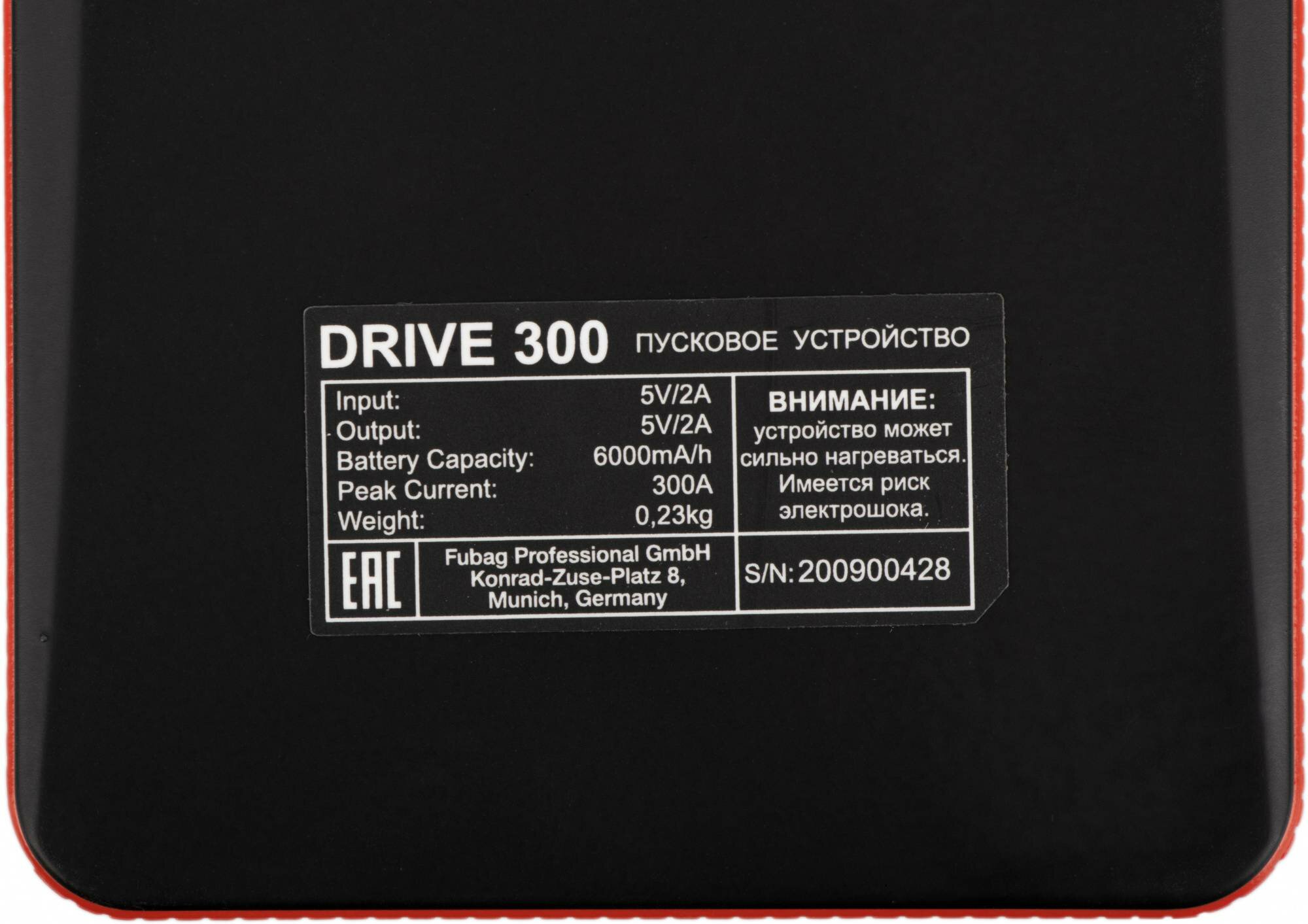 Fubag Блоки автопатики, пусковые устроиства Пусковое устройство DRIVE 300 ток запуска 300А емкость аккумулятора 6000 мАч 31459