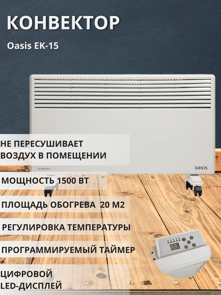 Конвектор Oasis EK-15, 20 м², колеса в комплекте, белый
