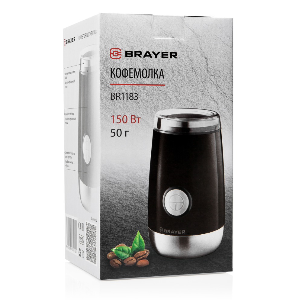 1183BR Кофемолка BRAYER BR1183, Емкость 50 г.,Мощн. 150 Вт, Пластиковый корпус, Чаша из нерж.стали