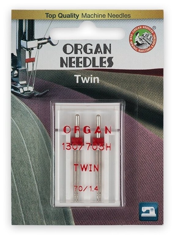 Иглы для швейной машины ORGAN 70/1,4, 2 шт, в блистере, двойные