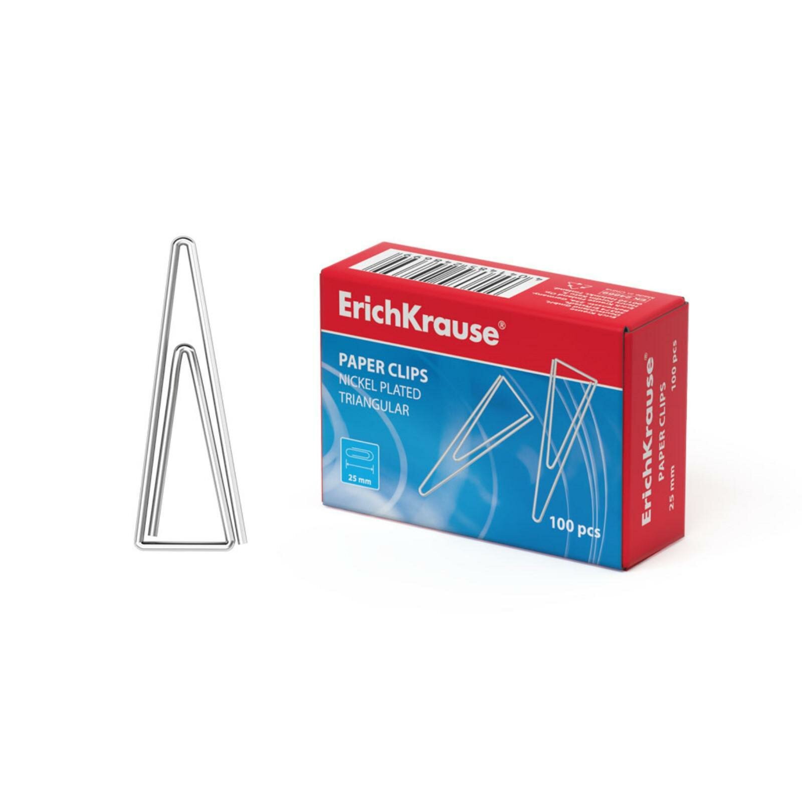 Купить Скрепки канцелярские 25 мм, 100 шт, ErichKrause, никелированные, треугольные, картонная упаковка