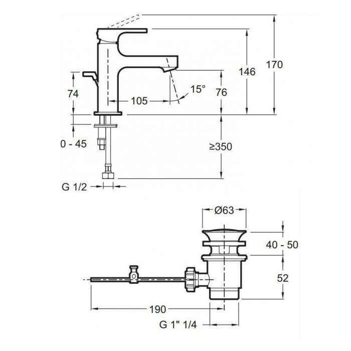 Смеситель Jacob Delafon Strayt E8776-CP для раковины с донным клапаном