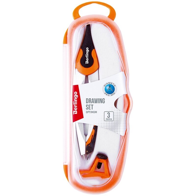 СохранитьГотовальня Berlingo "Optimum", 3 предмета, циркуль 135 мм, пластиковый футляр, оранжевый (DS_00303c) интересное: