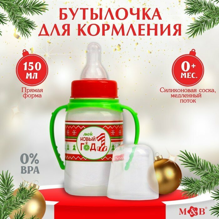 Купить Mum&Baby Бутылочка для кормления "Мой 1 новый год", 150 мл цилиндр, с ручками, цвет красный