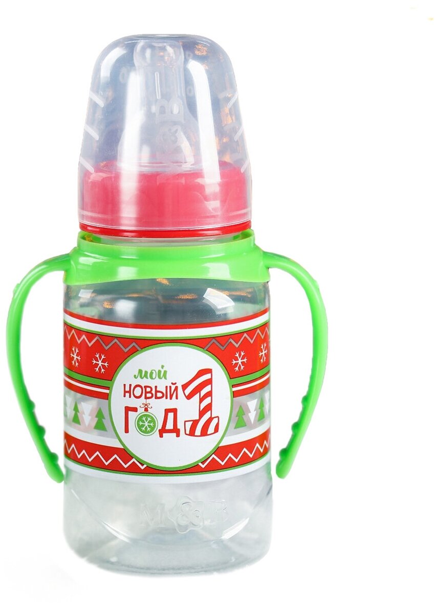 Mum&Baby Бутылочка для кормления «Мой 1 новый год», 150 мл цилиндр, с ручками, цвет красный