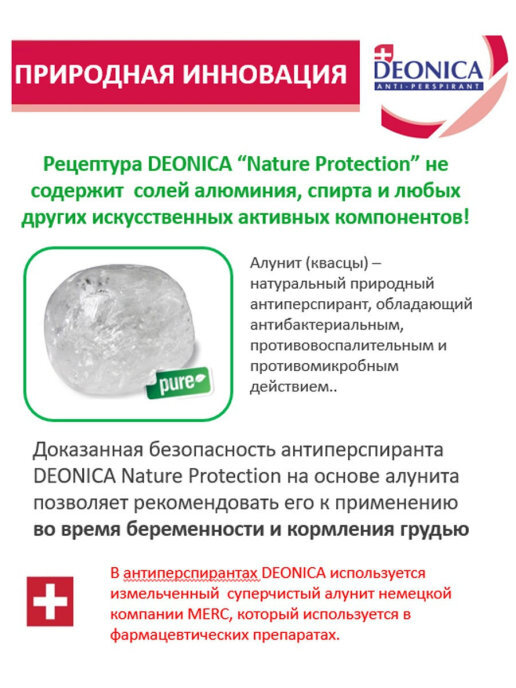 Дезодорант женский антиперспирант Deonica "Nature Protection" Ролик, 50 мл. С минералом алунит. Не оставляет следов на одежде