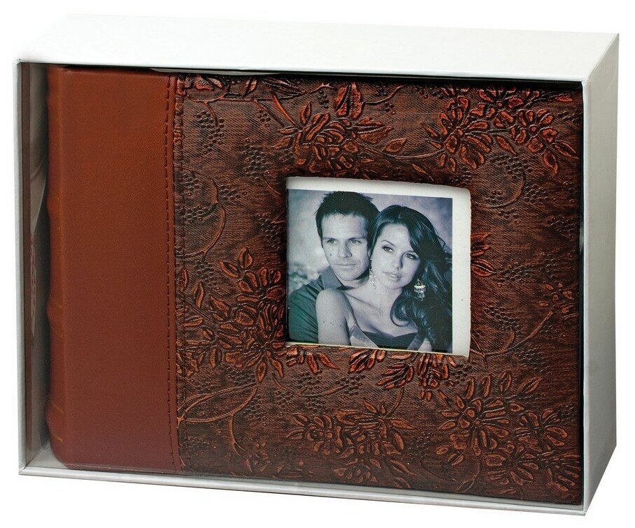 Фотоальбом Brauberg На 100 фото 10*15 см, под кожу, бумажные страницы, бокс, коричневый (390693)
