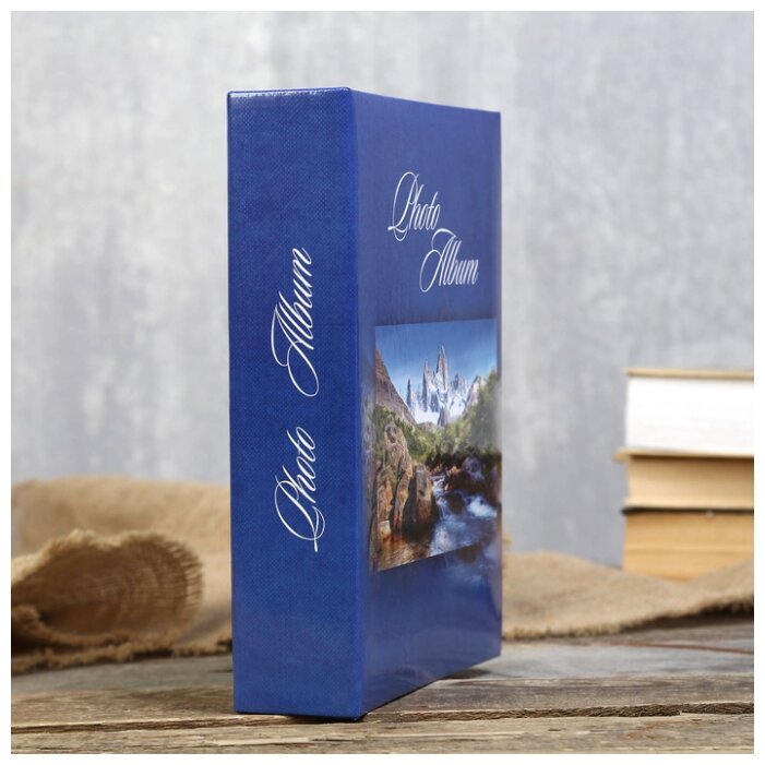 Фотоальбом семейный/свадебный/детский на 200 фотографий 10x15см "Горный пейзаж", твердая обложка, листы с карманами, синий, Brauberg