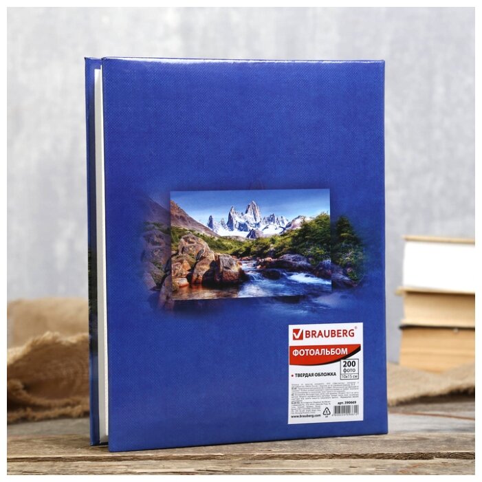 Фотоальбом Brauberg На 200 фото 10*15 см, твердая обложка, Горный пейзаж, синий (390669)