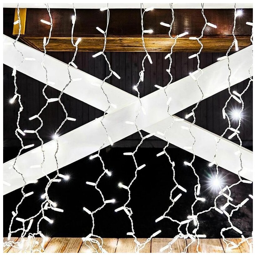 Светодиодная гирлянда Neon-night "Дождь" 2х1.5 м, 360 белых светодиодов, постоянное свечение, белый провод