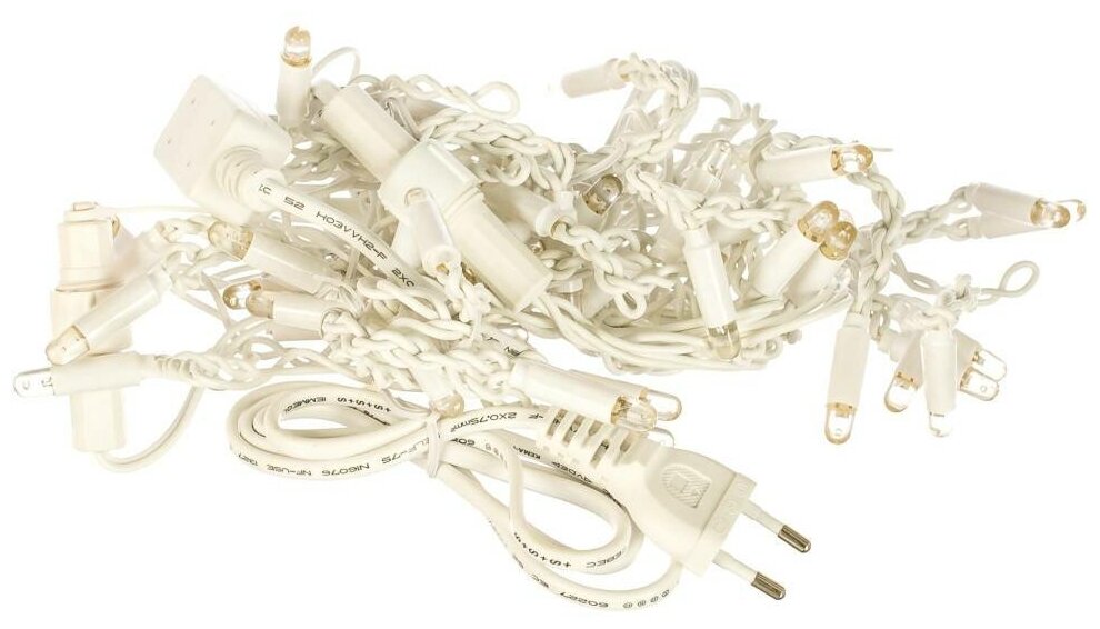 Светодиодная гирлянда "Бахрома" Neon-night 1.8х0.5 м, 48 тепло-белых светодиодов, постоянное свечение, белый провод
