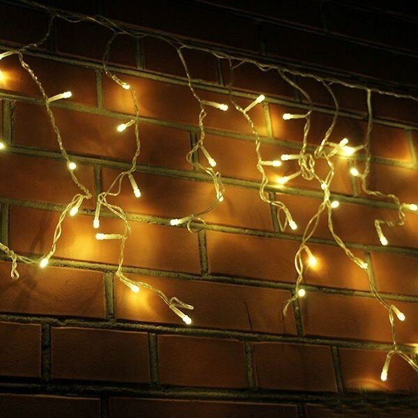 Гирлянда Айсикл (бахрома) светодиодный, 2,4 х 0,6 м, белый провод, 230 В, диоды Теплый Белый, 88 LED .
