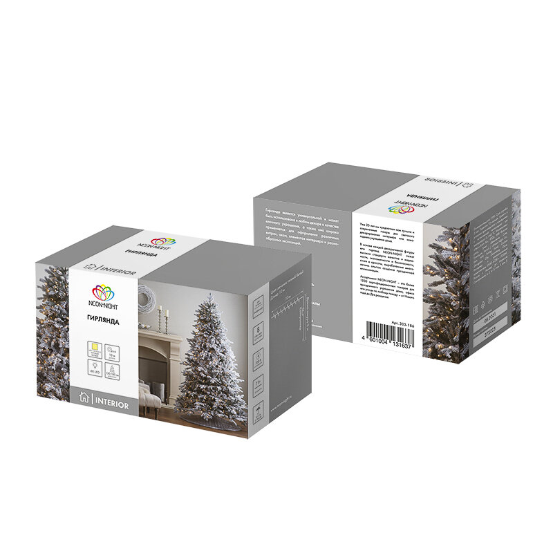 Электрогирлянда новогодняя NEON-NIGHT 303-186, 10 м, 80 ламп, теплый белый