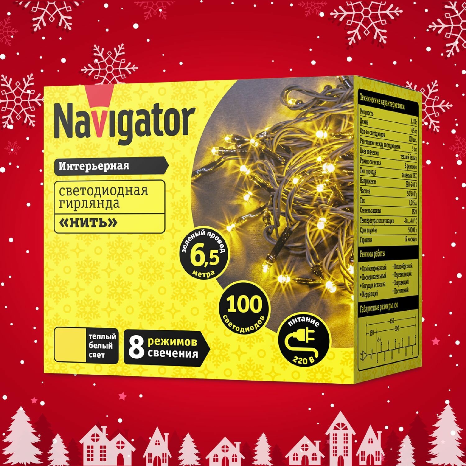 Гирлянда 61 805 NGF-S01-100CW-5-6.5m-230-C8-G-IP20 Navigator 61805 ( 1шт. )