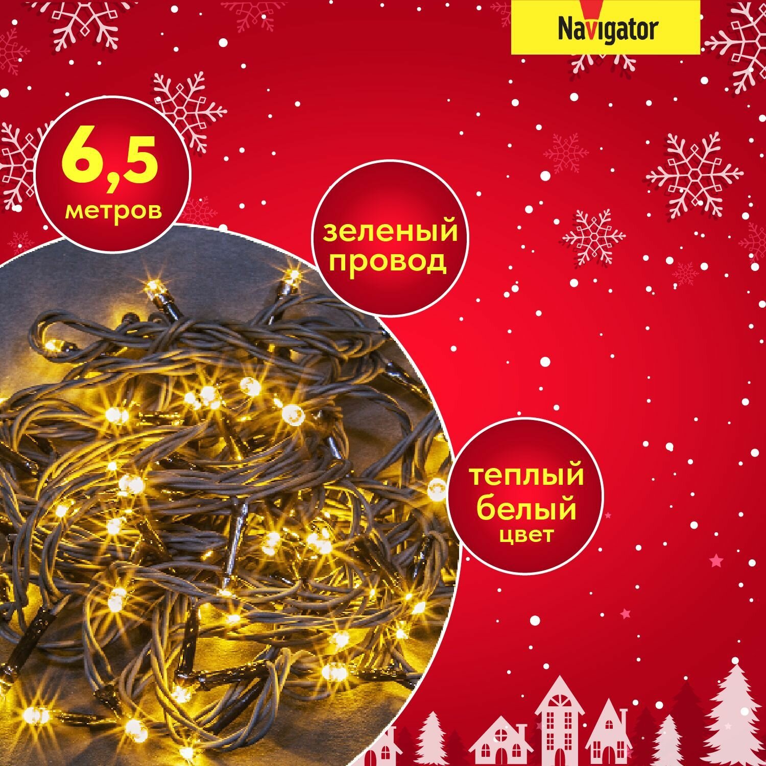 Купить Гирлянда светодиодная 61 804 NGF-S01-100WW-5-6.5m-230-C8-G-IP20 NAVIGATOR 61804