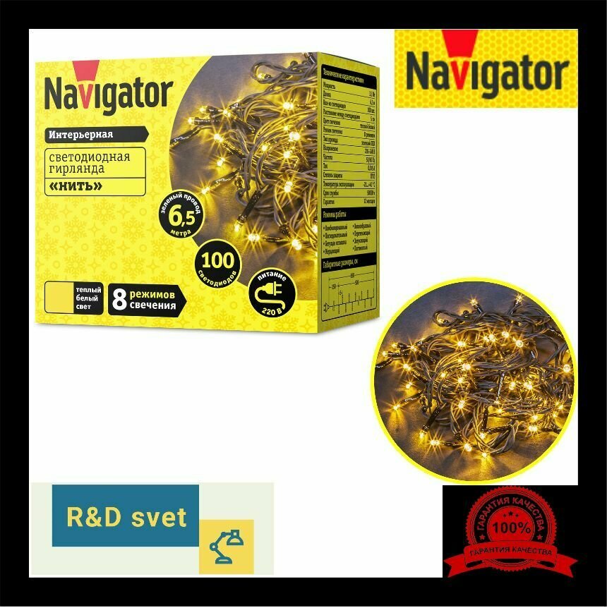 Гирлянда 61 803 NGF-S01-100RGBY-5-6.5m-230-C8-G-IP20 Navigator 61803 ( 1шт. )