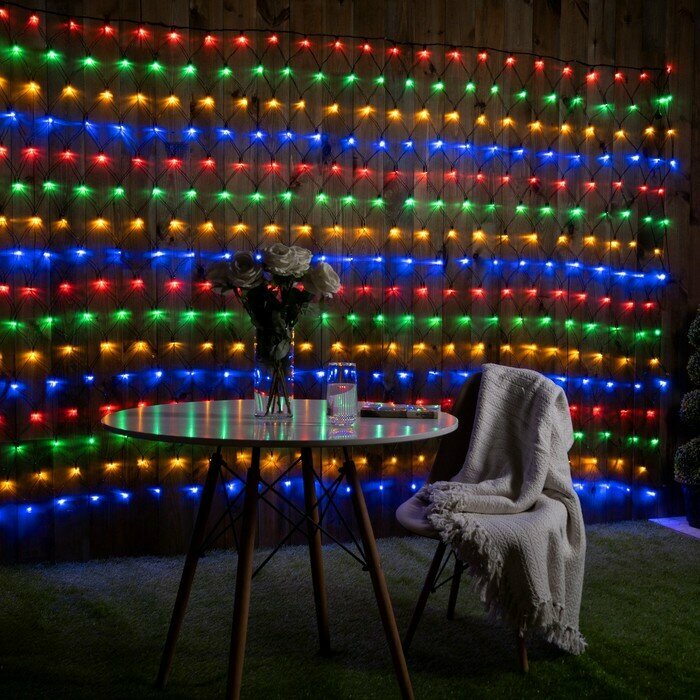 Гирлянда «Сеть» 2 × 1.5 м, IP44, УМС, прозрачная нить, 192 LED, свечение мульти, 220 В