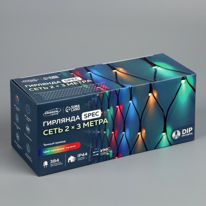 Купить Luazon Lighting Гирлянда "Сеть" 2 х 3 м , IP44, УМС, тёмная нить, 384 LED, свечение мульти, 220 В