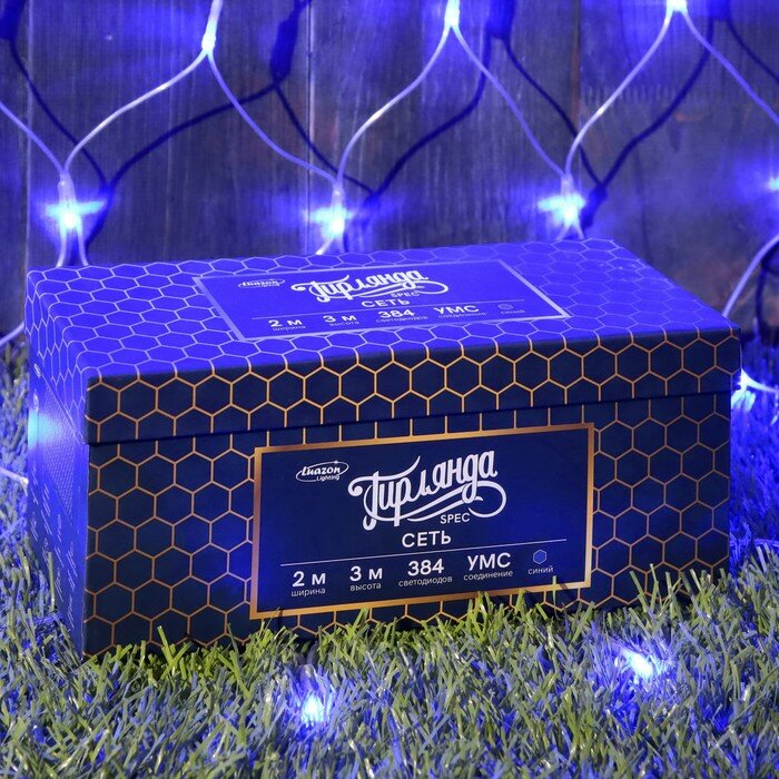 Купить Luazon Lighting Гирлянда «Сеть» 2 × 3 м, IP44, УМС, прозрачная нить, 384 LED, свечение синее, 220 В