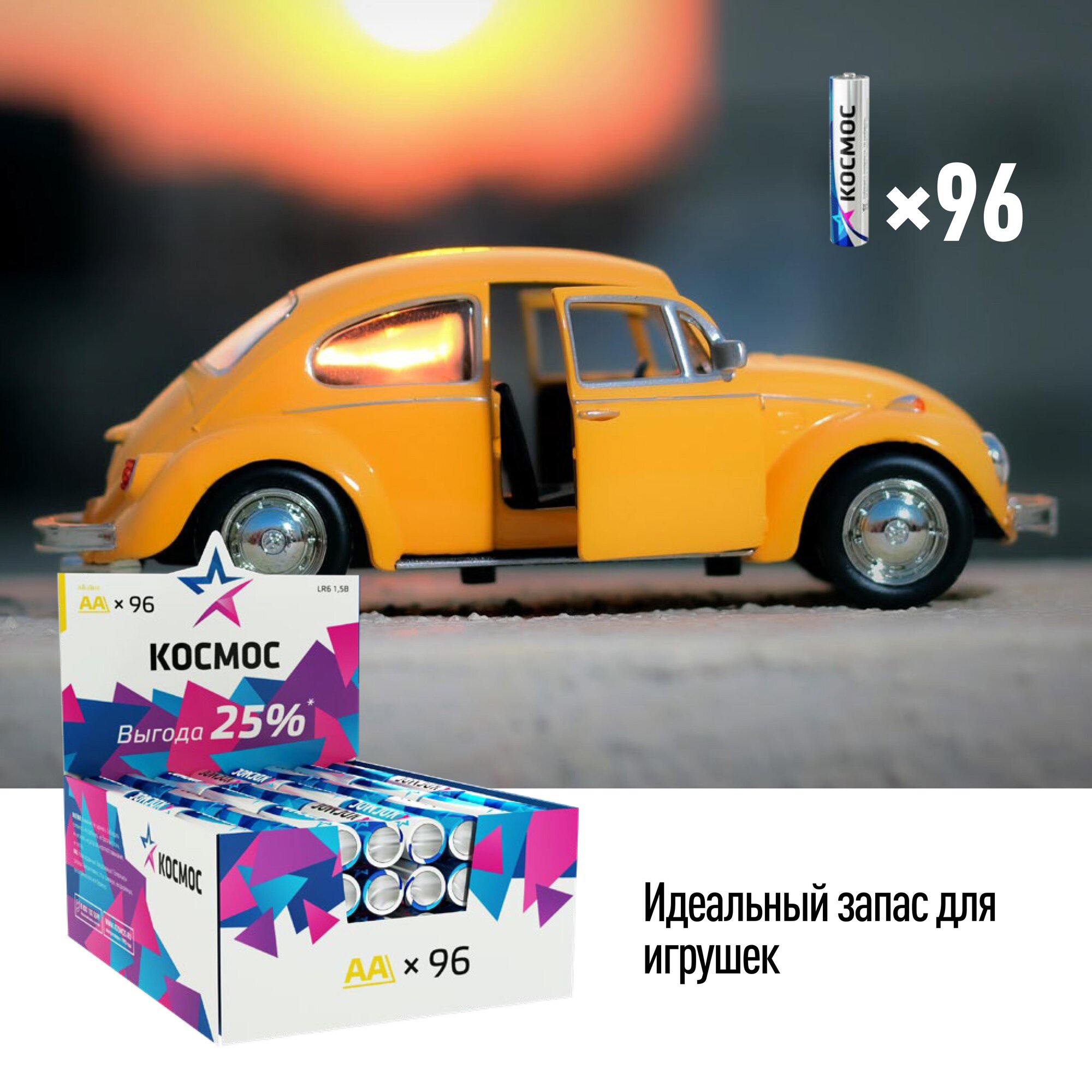 набор алкалиновых батареек Космос, тип LR3 (ААA), 96 шт