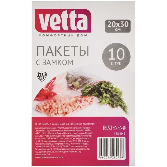 Пакеты VETTA с замком 10 шт, 20x30 см, 50 мкм, полиэтилен 438-041