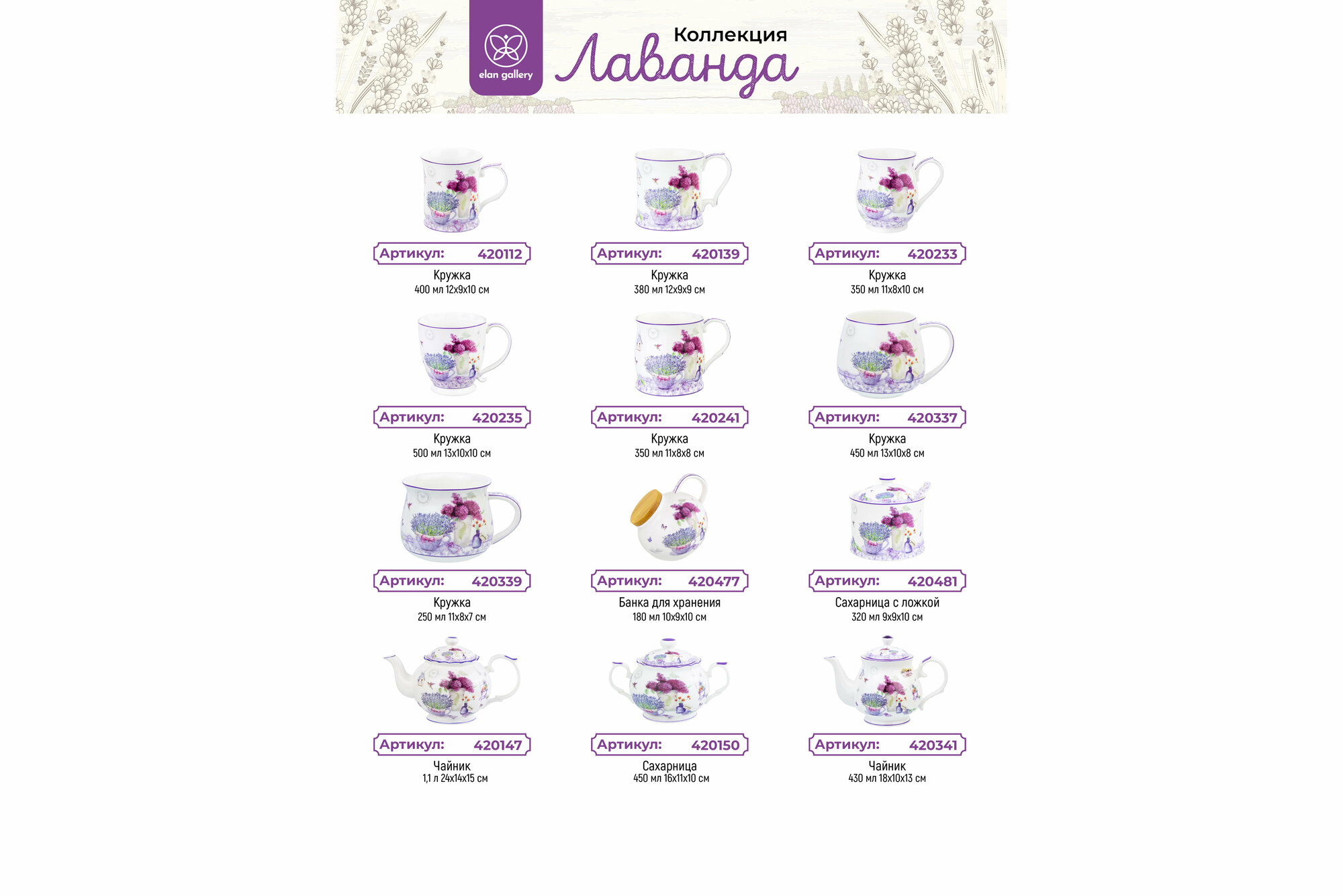 Кружка / чашка для чая / кофе 500 мл Elan Gallery "Лаванда" на ножке, 13,5*10*10,5 см интересное: