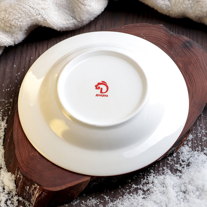 Доляна Тарелка фарфоровая суповая Доляна «Счастливого Нового года», d=20,2 см
