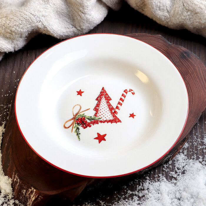 Купить Доляна Тарелка фарфоровая глубокая Доляна «Счастливого Нового года», d=20,2 см, цвет белый
