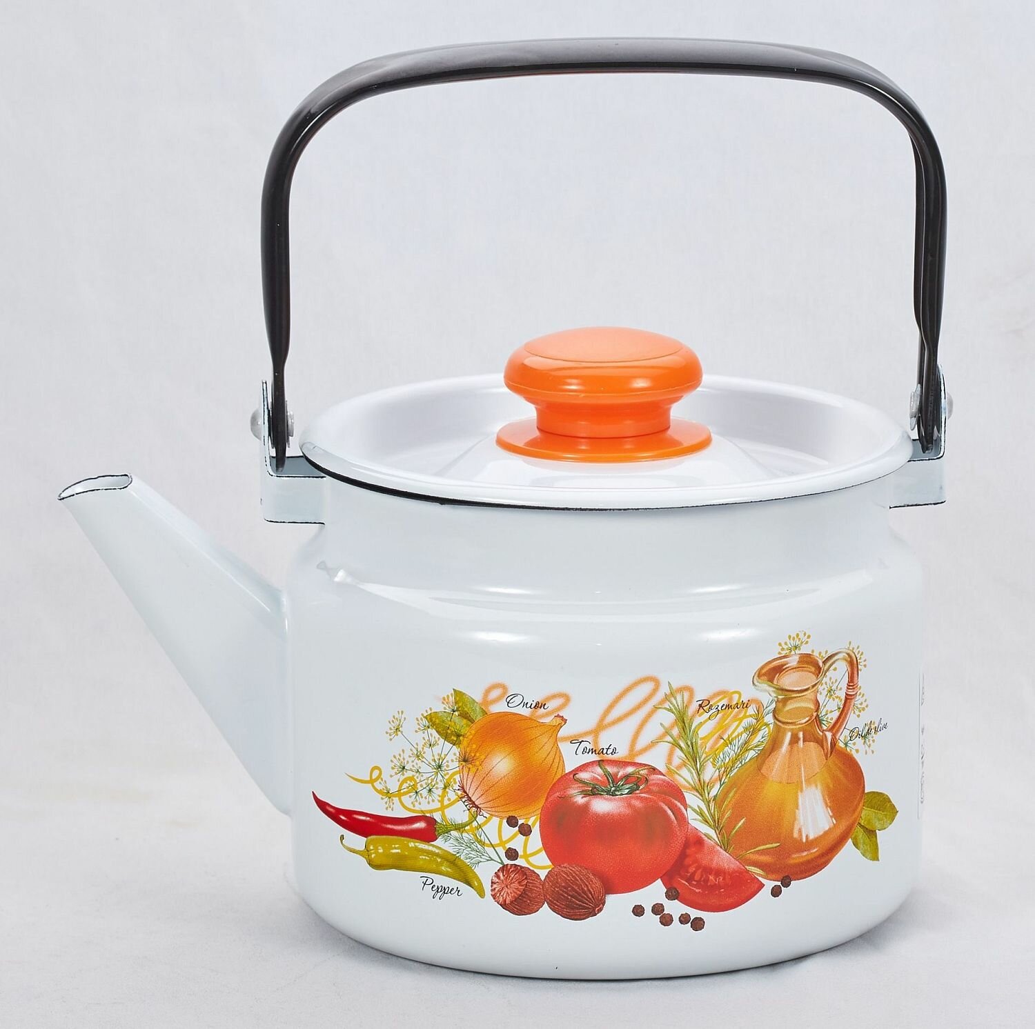 Купить Чайник эмалированный 2,0 л белый, с рисунком "Итальянская кухня"