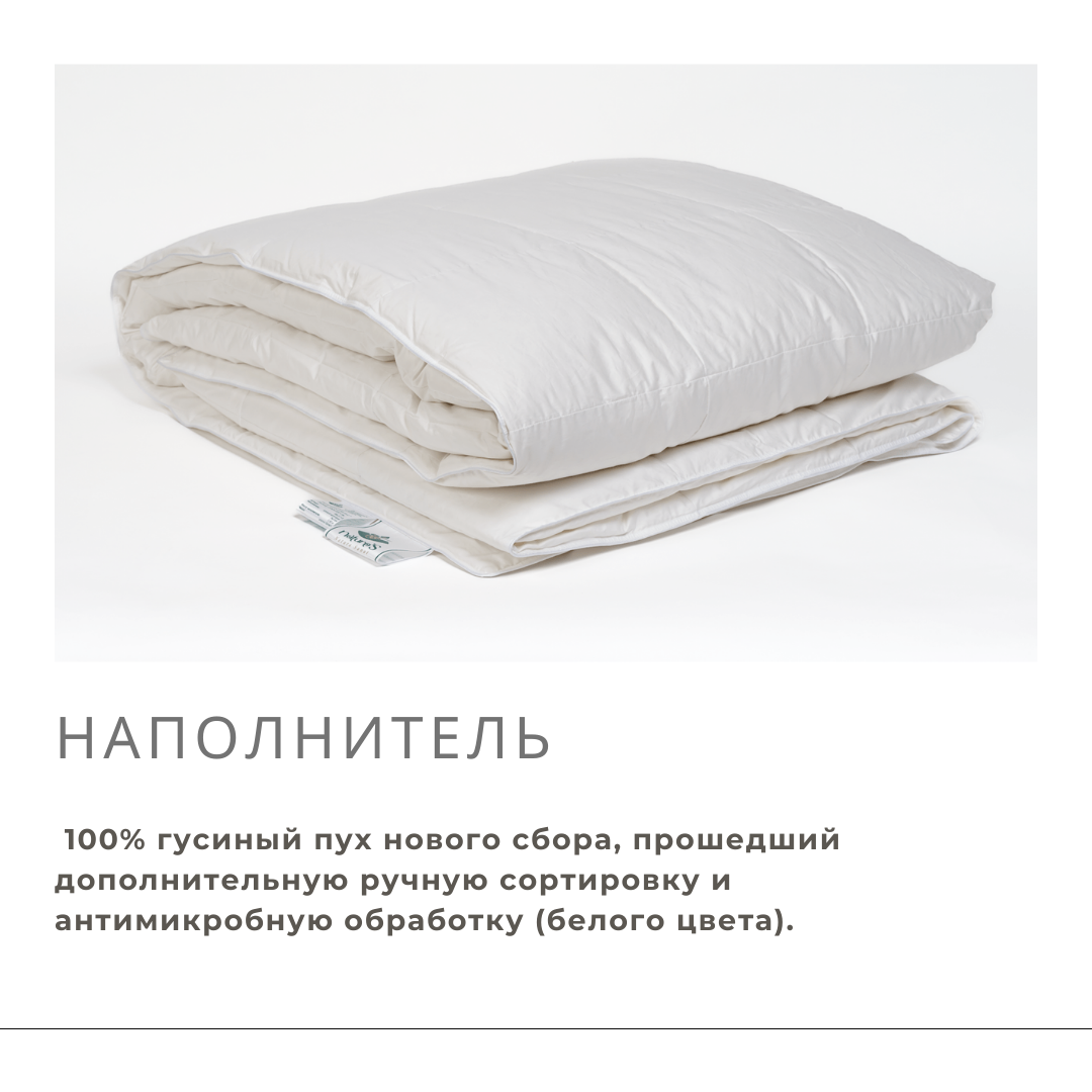 Одеяло 1.5 спальное 150х200 "Воздушный Вальс", Всесезонное, Кассетное, Наполнитель 100% Белый Гусиный Пух, Чехол Сатин, Премиум качество