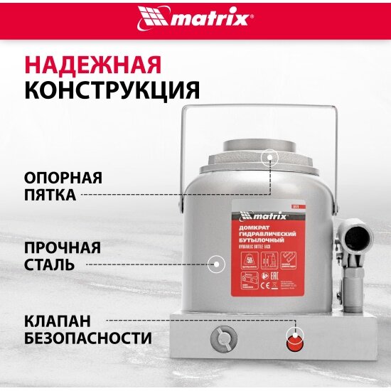Домкрат бутылочный гидравлический matrix 50779 (50 т) стальной